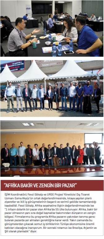 İş ve İnşaat Makineleri Kümelenmesi (İŞİM), Ekonomi Bakanlığı URGE projelerinde verimli sonuçlar elde ediyor. Kümenin üçüncü URGE Projesi kapsamındaki dördüncü yurt dışı rotası, dünyanın gözünü çevirdiği Afrika Kıtası oldu. 11 firmayla Kenya ve Güney Afrika’ya giden İŞİM grubu, sürdürdüğü ikili görüşmelerde önemli kazançlar elde etti.