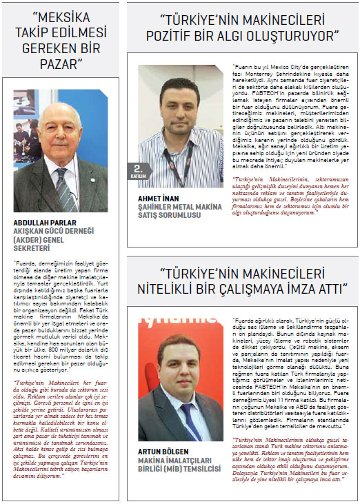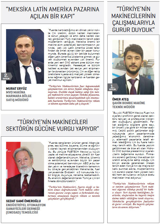 Türkiye’nin Makinecileri, Meksika’nın Mexico City şehrinde 4-6 Mayıs tarihleri arasında düzenlenen FABTECH 2016 Fuarı’na katılarak ziyaretçileri Türk makine sektörü ve üye firmaların çalışmalarıyla ilgili bilgilendirdi.