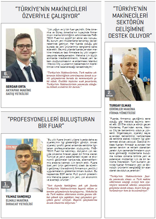Türkiye’nin Makinecileri, Meksika’nın Mexico City şehrinde 4-6 Mayıs tarihleri arasında düzenlenen FABTECH 2016 Fuarı’na katılarak ziyaretçileri Türk...
