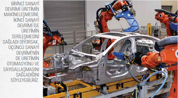 Elektronik ve bilgisayar desteğinin sanayiye ve özellikle makine sektörüne entegre olması, 1969 yılında, algılayıcılardan aldığı bilgiyi kendine verilen programa göre işleyen ve iş elemanlarına aktaran mikroişlemci tabanlı bir cihaz olan ilk programlanabilir mantık devresinin (PLC) PLC Bedford, Massachusetts’te bir grup mühendis tarafından geliştirilmesiyle gerçekleşti. PLC’lerin üretim sistemlerinin otomatikleştirilmesine imkân vermesi sanayide yeni bir dönemi başlatırken, elektronik, bilgi ve iletişim teknolojilerinin gelişimi üretimin otomasyonunu sağladı. Dolayısıyla Birinci Sanayi Devrimi üretimin makineleşmesini, İkinci Sanayi Devrimi ise üretimin serileşmesini sağladı diyorsak, Üçüncü Sanayi Devrimi’nin de üretimin otomasyonu ve sayısallaşmasını sağladığını rahatlıkla söyleyebiliriz.