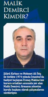 Esmaş’ın ürün skalasında yer alan yedi farklı ürünle, faaliyet alanında Türkiye pazarının yüzde 75’ine hakim olduğunu vurgulayan Esmaş Yönetim Kurulu Başkanı Malik Demirci; “Müşterilerimizin ilk tercihi olmak, bugüne kadar firmamızın değişmeden gelen temel ilkesi. Faaliyet alanımızda yedi farklı ürünle Türkiye pazarının yüzde 75’ine sahip olmamız da sanırım müşterilerimizin, ürünlerimize olan tercihinin en iyi göstergesi. Biz makinelerimizin kalitesine, bilgi birikimimize, üretimdeki uzmanlığımıza, pazarlama ve satış tecrübemize fazlasıyla güveniyoruz.