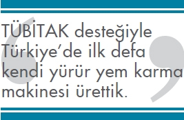 TÜBİTAK desteğiyle Türkiye’nin ilk kendi yürür yem karma makinesini ürettiklerini belirten Fimaks Makina İhracat Müdürü Fatih Durak, kendi yürür yem karma makinesinin hayvan yetiştiricilerinin işini kolaylaştırma açısında devrim niteliğinde bir ürün olduğunu söyledi. Durak sözlerini şöyle sürdürdü; “Makinemizi bu yılın Ekim ayında Bursa Tarım Fuarı’nda görücüye çıkardık. Çekili yem karma makinelerindeki traktör ihtiyacını ortadan kaldıran kendi yürür yem karma makinesi ayrıca tüm hayvan yemleme işini tek kişinin yapabilmesini sağlıyor. İlerleyen yıllarda kullanımının oldukça yaygınlaşacağını düşündüğümüz bu makine dünyada da çok az sayıda firma tarafından üretilebiliyor. Bu çerçevede ülkemizin adını bu özelliklere sahip bir ürün ile duyurmak oldukça gurur vericidir.”