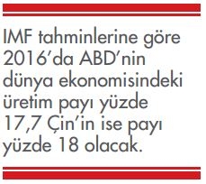 IMF verilerine göre, mevcut büyüme hızını sürdürmesi halinde 2016 yılında dünyanın en büyük ekonomik gücü ABD’yi...