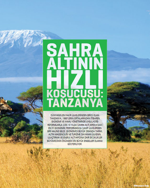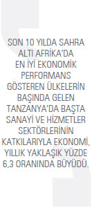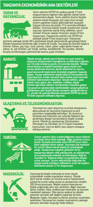 Son 10 yılda Sahra Altı Afrika’da en iyi ekonomik performans gösteren ülkelerin başında gelen Tanzanya’da başta sanayi ve hizmetler sektörlerinin katkılarıyla ekonomi, yıllık yaklaşık yüzde 6,3 oranında büyüyor. Tarım sektöründeki büyüme ise ortalama yüzde 4,2 olarak gerçekleşiyor. Politik istikrar ve sağlam hükümet politikaları sayesinde doğrudan yabancı yatırımlar artış gösterirken, döviz kurlarında kayda değer bir istikrar da sağlanmış durumda. Son yıllarda Tanzanya’daki enflasyon oranı Frank Bölgesi dışındaki bölgenin en düşüğü olarak gerçekleşirken, reformlar ekonomiyi dış şoklara karşı daha dayanıklı hale getiriyor. Ülkede 2015 yılı itibarıyla kişi başına düşen gelir 957 dolarken, özellikle Asya’dan gelen talebe bağlı olarak emtia fiyatlarının süratle toparlanması, en önemli ihraç ürünlerinden birisi altın olan Tanzanya ekonomisi için yararlı olmuştu. Fakat altın fiyatlarındaki küresel düşüşle beraber en büyük ihraç kaleminin altın olması sebebiyle Tanzanya’nın 2013- 2017 döneminde cari açığının nominal olarak artacağı da düşünülüyor.
