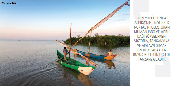 kilometrekare yüz ölçümü ve 45 milyona yaklaşan nüfusuyla Doğu Afrika’nın en büyük ülkelerinden biri. Doğusunda Hint Okyanusu’nun yer aldığı ülke Mozambik, Malavi, Zambiya, Kongo, Brundi, Ruanda, Uganda, Kenya ile sınır komşusu. Kuzeydoğusunda Afrika’nın en yüksek noktasını oluşturan Klimanjaro ve Meru Dağı yükselirken; Victoria, Tanganyika ve Nyasa olmak üzere kıtadaki en büyük göllerin üçü de Tanzanya’da yer alıyor. Ülkenin sahile yakın bölgelerinde ovalar, orta bölgelerde platolar, kuzey ve güneyde ise dağlık alanlar bulunurken, sahil bölgelerinde tropik, yüksek bölgelerde ılıman iklim hâkim.