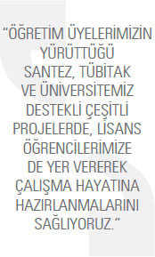 Öğrencilerimizin, zorunlu işletme ve uygulamalı staj programı kapsamında sanayi ile hem yöneticilik-işletmecilik, hem de tasarım- üretim çerçevesinde koordineli çalışmalar yürütmesinin altyapısı oluşturuyor ve bu yönde çeşitli destekler sunuyoruz. Bölümde yürütülen, ulusal ve uluslararası destekli öğretim üyesi projeleri ve öğrenci çalışmaları kapsamında üretime yönelik önemli kazanımlar elde ediyoruz. Bölümünüz bünyesinde gerçekleştirdiğiniz veya gerçekleştirmeyi planladığınız sanayi projeleri konusunda bilgi verir misiniz? Bölümümüzde ulusal (TÜBİTAK, SANTEZ), uluslararası (AB) ve üniversitemiz destekli (BAP) çok sayıda proje halihazırda devam ediyor. Farklı konu başlıklarına sahip bu projeler makro ve nano ölçekteki araştırma ve uygulamaları kapsıyor. Isı, enerji, motor teknolojileri, malzeme ve tasarım stratejik sektörlerin de dahil olduğu bu projelerin hem teorik, hem sayısal, hem de deneysel yönleri bulunuyor. Üniversitemiz bünyesindeki teknokent ile bu çalışmalar sanayi ile koordineli olarak sürdürülüyor.