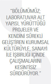Bölümümüz, özellikle 1998’den itibaren sistematik bir şekilde eğitimde kalite artırımı konusunu kurumsal olarak gündeminin ilk sırasına koydu. Bu çerçevede her yıl eğitim gören, her sınıftaki öğrenciler ve mezun öğrencilerimizden, değişik iletişim yollarıyla görüşlerini alıyoruz. Aynı zamanda, mezunlarımızın istihdam edildiği işletmelerin üst yöneticileriyle iletişim kurarak eğitimimiz hakkındaki görüş ve önerilerini öğreniyor ve bu geri bildirimleri dünyaca kabul gören üniversitelerin uygulamaları ile birlikte değerlendirilerek eğitimimize yansıtıyoruz. Bölümümüz kuruluş aşamasından itibaren devamlı bir gelişme süreci yaşıyor. Yıllar içinde yükselen değişim ivmesi, günümüzde de devam ediyor. Öğretim üyesi sayımızın yıllar içinde yükselmesi ile geniş bir yelpazede araştırma yapma imkanımız arttı. Bu sayede farklı disiplinlerin ortak araştırma çalışmalarında yer alabiliyoruz.