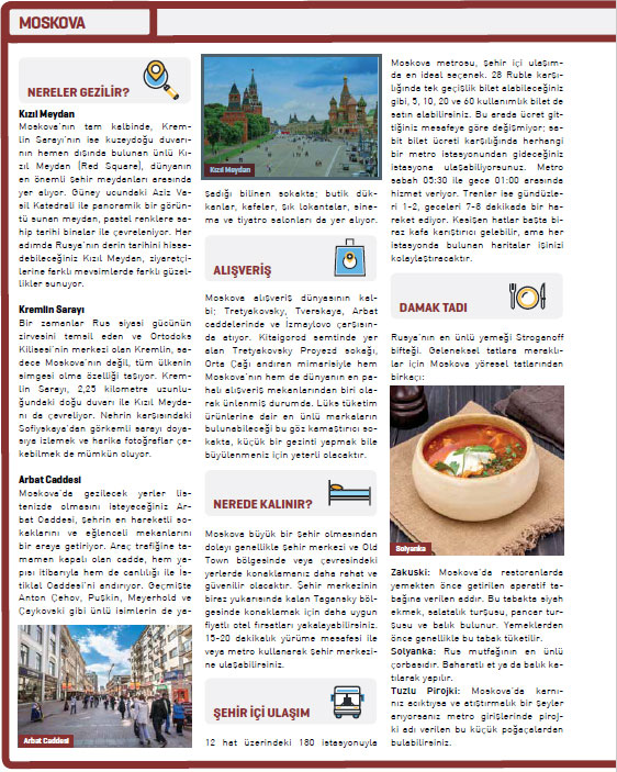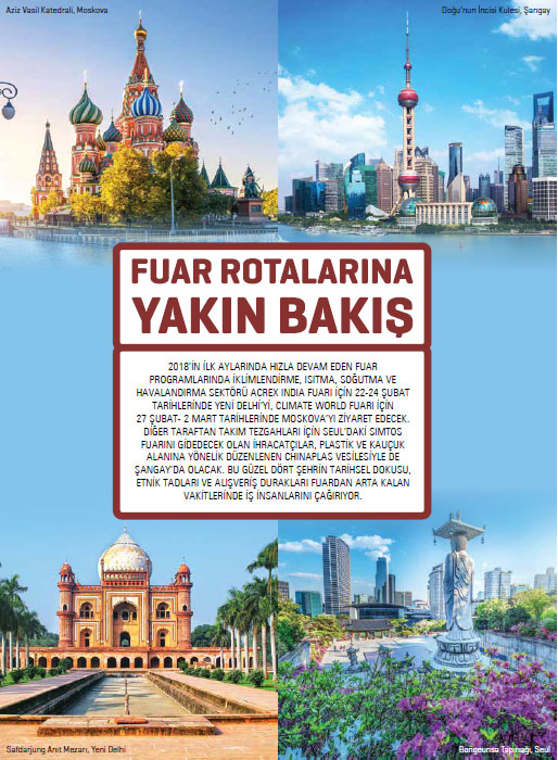 Moskova, Yeni Delhi, Seul ve Şangay bu sayımızın fuar rotası için belirlediğimiz dört ayrı durağı. 12 milyonu aşkın nüfusu ile Rusya’nın en görkemli şehirleri arasında öne çıkan başkent Moskova, gezilecek...