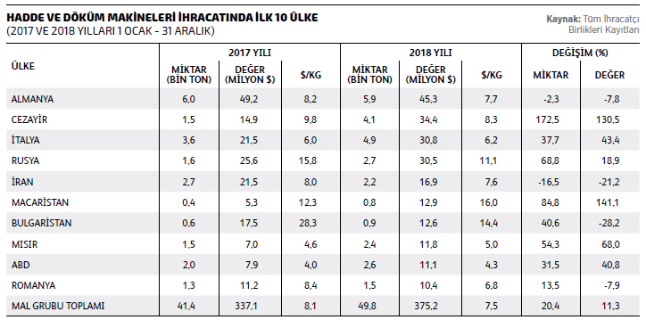 Savunma sanayii ile hadde ve döküm makineleri ihracatı yükseliyor