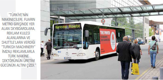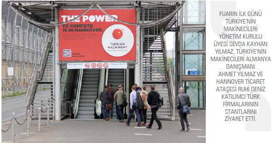 Türkiye’nin Makinecileri, fuarın metro girişinde yer alan skyboardlara, reklam kulesi alanlarına ve shuttle’lara verdiği “Turkish Machinery” imzalı reklamlarla Türk makine sektörünün üretim gücünün altını çizdi. Türkiye’nin Makinecileri ayrıca fuara katılan Türk firmalarının stant numaralarını ve ürün bilgilerini de içeren broşür hazırlayarak ziyaretçilere dağıttı. Makine İhracatçıları Birliği (MAİB) üyesi firmaların ve Makine Sanayii Sektör Platformu (MSSP) üyesi derneklerin tanıtım kitapçıklarının yanı sıra, Türkiye’nin makine ihracatı verilerini içeren broşürler de Türkiye’nin Makinecileri’nin standında fuar ziyaretçilerine sunuldu. Fuara MAİB ve Türkiye’nin Makinecilerini temsilen Yönetim Kurulu Üyesi Sevda Kayhan Yılmaz ile Makine Şubesi Uzmanı Bahar Özcan İle Uzman Yardımcısı Şeyda Yıldız Sarıca katıldı. Makine alt sektörlerini kendi ihtisas fuarlarında son dönemlerde destekleyen Türkiye’nin Makinecilerinin standında, MSSP üyesi derneklerden ARÜSDER (Araç ve Araç Üstü Ekipman ve İş Makinaları Üreticileri Birliği Derneği), İMDER (Türkiye İş Makinaları Distribütörleri ve İmalatçıları Birliği) ve TEVİD (Elektrikli Vinç İmalatçıları Birliği) temsilcileri de hazır bulunarak fuar ziyaretçilerine, sektörleri ve üye firmaları hakkında bilgi verdi. Fuarın ilk günü Türkiye’nin Makinecileri Yönetim Kurulu Üyesi Sevda Kayhan Yılmaz, Türkiye’nin Makinecileri Almanya Danışmanı Ahmet Yılmaz ve Hannover Ticaret Ataşesi Ruhi Deniz katılımcı Türk firmalarının stantlarında ziyaret etti. Fuar kapsamında ayrıca Hannover Başkonsolosu Mehmet Günay ile de çeşitli temaslarda bulunuldu. Dört gün süren ve bu yılki ana teması “Akıllı Tedarik Zinciri Çözümleri” olan CeMAT Fuarı’nda tedarik süreçlerinde akıllı ve esnek çözümler ile Endüstri 4,0 kapsamında belirlenen yeni lojistik trendleri ele alındı. Türkiye’nin Makinecilerinin standında fuar süresince Türk makine sektörünü tanıtan bir film gösterildi. Ayrıca ziyaretçilere üye firmaların iletişim bilgilerinin yer aldığı katalog ve CD dağıtılarak Türk makine sektörü ile Türkiye’nin Makinecilerinin çalışmaları hakkında detaylı bilgi verildi.