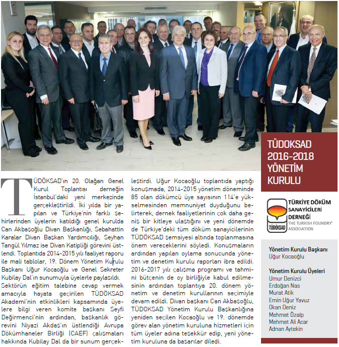 Türkiye Döküm Sanayicileri Derneği’nin (TÜDÖKSAD) 20. Olağan Genel Kurulu 17 Şubat’ta İstanbul’da gerçekleştirildi. Olağan Genel Kurul sonrasında Uğur...