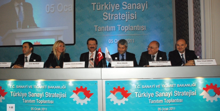 Türk sanayisinin rekabet edebilirliğinin ve verimliliğinin yükseltilerek, dünya ihracatından daha fazla pay alan, ağırlıklı olarak yüksek katma değerli ve ileri teknolojili ürünlerin üretildiği, nitelikli iş gücüne sahip aynı zamanda çevreye ve topluma duyarlı bir sanayi yapısına dönüşümünü hızlandırmak için oluşturulan 2011-2014 Türkiye Sanayi Strateji Belgesi Çırağan Sarayı’nda gerçekleşen toplantıyla açıklandı. Sanayi ve Ticaret Bakanlığı’nca hazırlanan belge hakkında konuşma yapan Sanayi ve Ticaret Bakanı Nihat Ergün, makroekonomik alanda sağladıkları güven ve istikrarın üzerinde mikro alanda ihtiyaç duyulan reformları kararlı bir şekilde hayata geçirmenin zamanının geldiğini belirterek; “Sanayi Strateji Belgesi ve Eylem Planı, mikro alanlardaki reformları gerçekleştirmemizi sağlayacak bir enstrüman olduğu için son derece önemli ve kıymetlidir” dedi.