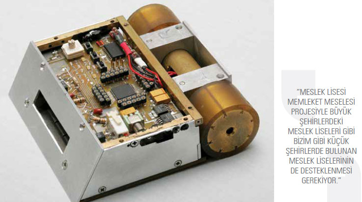 Okulun gözde bölümlerinden olan elektrikelektorik, bilgisayar ve makine alanlarının birlikte iyi bir sinerji yakalamış olması, robotik ve mekatronik gibi konularda yapılan yarışmalara katılma isteğini ortaya çıkarıyor. Okul yöneticilerinin maddi ve fiziki imkanları seferber etmesi, öğrencilerin de heyecanını taze tutuyor. Ben ve diğer meslektaşlarım Sezgin Ünal, Bahadır Özen, Ahmet Yurtçu, Seçkin Meydan; öğrencilerimiz Mutlu Gün ve Turabi Türkmen’in bu projeyi hayata geçirebilmesi için beraber çalıştık. Projelerimizi okulumuzun imkanlarıyla gerçekleştiriyoruz. İlimizde sanayi imkanlarının az olması nedeniyle sponsor bulamadık ama bazı projeleri İstanbul’da faaliyet gösteren Amasyalı işverenler destekledi. Bu destekler genelde malzeme temini yönünde oldu.