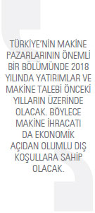 Küresel ekonomik krizin yıllar sonra halen süren etkisi olarak makine yatırımları 2016 yılına kadar zayıf kaldı. Küresel ekonomide oluşan atıl kapasitelerin konsolidasyonu zaman aldı. Mevcut kapasitelere yönelik talep ancak 2016 ve özellikle 2017 yılında hareketlendi ve kapasiteleri doldurmaya başladı. Bu çerçevede yeni kapasite odaklı makine yatırımları ilk kez 2017 yılında artmaya başladı. 2018 yılında ise makine yatırımlarının ve bu nedenle de makine talebinin artacağı öngörülüyor. Ayrıca yatırımlar artık içerik de değiştiriyor. Endüstri