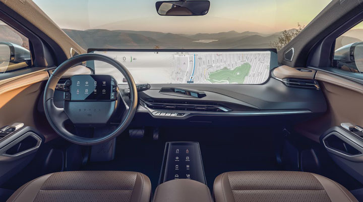 ABD’nin Las Vegas kentinde düzenlenen CES 2019’da Çinli otomobil üreticisi Byton, SUV konseptli elektrikli ve otonom sürücülü aracını tanıtırken, M-Byte isimli konsept araç CES 2019’un en fazla dikkat çekenlerinden oldu. Otonom sürüş teknolojileri şirketi Aurora’nın geliştirdiği Seviye 4 otonom sürüş yeteneğine sahip olan M-Byte’ın en dikkat çekici özelliği ise ön konsolunu tamamen kaplayan 48 inçlik (1,25 metre uzunluğunda) dev sürüş ekranı.