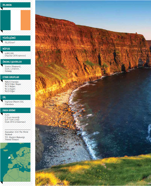 İrlanda, serbest ekonomiye sahip bir ülke. Euro’nun ilk kez dolaşıma girdiği 1 Ocak 2002’den bu yana Euro Bölgesi üyesi. Ülke mali piyasalardan borçlanabiliyor. Ekonomi 2011’de yüzde 2,8, 2012’de yüzde 0,8 ve 2013’te yüzde 0,2 büyüme kaydetti. Milli gelirin yaklaşık yüzde 61,8’i hizmet, yüzde 35,3’ü sanayi, yüzde 2,9’u tarım sektörü kaynaklı. İrlanda ihracata dayalı bir ekonomiye sahip. 126 milyar euro’luk ticaret hacminin 80 milyar euro’su ihracat gelirlerinden oluşuyor. İhracat ekonomik krizden çıkış sürecinde temel araç olarak görüldü. Son dönemde bankacılık ve ekonominin yönetimi başta olmak üzere birçok alanda reformlar gerçekleştirildi. Moody’s tarafından İrlanda’nın kredi notu yükseltildi. Ülkede işsizlik oranı yüzde 11. Dünya lideri 10 küresel yazılım şirketinin dokuzu, 15 medikal teknoloji şirketinin 13’ü, 25 finans şirketinin 15’i ve 15 internet şirketinin dokuzunun merkezi İrlanda’da yer alıyor.