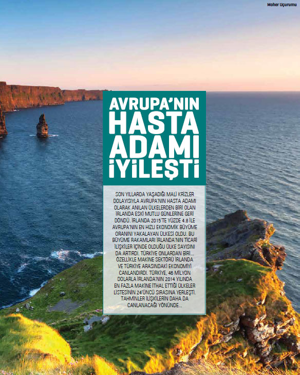 Yeniden doğuş döneminde İrlanda’nın ticari ilişkiler anlamında önem verdiği ülkelerden biri Türkiye. Bu önemi göstermek amacıyla 2015 Ekim ayında İrlanda ticaret heyeti, İrlanda İş ve İstihdam Bakanı Ged Nash TD öncülüğünde Türkiye’yi ziyaret etti. Türkiye ile İrlanda arasındaki ticaret hacminin artırılmasını hedefleyen heyet, İstanbul’da bir dizi ticari görüşmelerde bulundu. Ankara’da da çeşitli bakanlıklarla temas kurdu. Ankara’daki İrlanda Büyükelçiliği’nin desteğiyle İrlandalı girişimcilerin dünya pazarlarındaki büyüme ve gelişiminden sorumlu İrlanda Devlet Ajansı Enterprise Ireland tarafından organize edilen ziyarete 30 İrlandalı şirket katıldı. Heyette telekomünikasyon, havacılık, makine sektörünün temsilcileri yer aldı. İrlanda İş ve İstihdam Bakanı Ged Nash, burada önemli bilgiler aktardı. Buna göre, İrlanda ve Türkiye arasındaki karşılıklı satın alma ve hizmet ticareti toplamda yaklaşık 1.2 milyar euro seviyesinde bulunuyor. Bu, iki ülke arasındaki bağları güçlendirmeye teşvik eden bir rakam. Ayrıca İrlanda gibi Türkiye de dinamik bir ekonomiye sahip ve doğrudan yabancı yatırımların dikkatini çekme konusunda oldukça istekli. İrlanda ve Türkiye arasındaki bu tür ekonomik benzerlikler, işbirliği içindeki ülke ve şirketlere daha çok fayda sağlayan gerçek bir güç olarak öne çıkıyor.