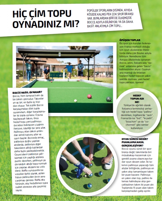 Bocce, hem bireysel hem de bir takım sporudur. Takımlar en az bir, en fazla üç kişiden oluşur. Tek kişilik Bocce karşılaşmaları dört topla oynanırken, diğer karşılaşmalar iki topla oynanır.