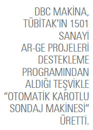 DBC Makina, TÜBİTAK’tan 1501 Sanayi Ar-Ge Projeleri Destekleme Programı kapsamında aldığı teşvik desteğiyle Türkiye’deki sondaj şartlarına uygun, otomatik olarak çalışabilen sondaj makinesi üretti. “Otomatik Karotlu Sondaj Makinesi” üretimiyle DBC Makina, karotlu sondaj teknolojisinin tamamını en üst kalitede sunabilen dünyadaki sayılı firmalar arasına da girdi.