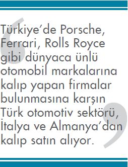 Türkiye’de yaşanan tüm sorunların en önemli sebebi iletişim eksikliğidir. Bu durum, kalıpçılık dahil olmak üzere tüm üretim sektörlerimiz için geçerlidir. Ülkemizde otomotiv ve beyaz eşya başta olmak üzere üretime yönelik sektörler hızla büyüyor. Fakat üretime yönelik sektörler birbirleriyle sağlıklı bir iletişim kurmuyor. Bilgilerini, ihtiyaçlarını, sorunlarını paylaşmıyor. Oysaki sorunları ve ihtiyaçları belirledikten sonra çözüm üretmenin son derece kolay olduğunu düşünüyoruz. Ulusal Kalıp Üreticileri Birliği olarak otomotiv sektörüyle bir araya geldik ve Türkiye’deki kalıp sektörü üzerine bir değerlendirme toplantısı yaptık. Bu çalışmaya, kalıpçılarımızın en önemli müşterisi ve otmotiv sektörünün iki önemli sivil toplum kuruluşu olan; Otomotiv Sanayii Derneği (OSD) ve Taşıt Araçları Yan Sanayicileri Derneği (TAYSAD) ön ayak oldu. Toplantılarda kalıp tedarikinde yaşadıkları sıkıntıları paylaştılar. Birçok kalıbın Türkiye’de üretilemediğini aktardılar. Karşılıklı görüşmelerde Almanya, İtalya gibi ülkelere sattığımız birçok kalıbın Türkiye’de yapılabildiğinden otomotiv firmalarının bilgisi olmadığını anladık. Toplantı sonucunda; Türk kalıpçıları ile onların en önemli müşterisi olan Türk otomotiv sektörünün birbirini yeterince tanımadığı ve arada çok net bir iletişim problemi yaşandığı ortaya çıktı. Bilgi paylaşımında problem yaşanıyorsa hiçbir yere varılamayacağını düşünüyoruz. OSD, TAYSAD ve UKUB üyelerinden oluşan bir heyet oluşturduk.