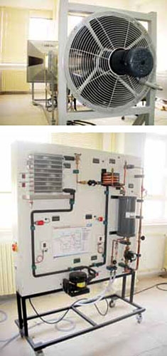 Anabilimdallarına bağlı beş temel laboratuar olup, bunlar; Termodinamik ve Akışkanlar Mekaniği Laboratuarı, Enerji Laboratuarı, İmalat ve Konstrüksiyon Laboratuarı, Mekanik ve Makina Dinamiği Laboratuarı, Ölçme Tekniği ve Otomasyon Laboratuarı adları ile yakın zamanda kurulmuştur. Laboratuarlar, hem lisans öğrencilerinin teorik bilgilerini pratik bilgilerle destekleyebilecekleri hatta proje ve bitirme tezleri için deneysel çalışmalarını yapabilecekleri teknik altyapıya sahip hem de lisansüstü öğrencilerinin ve akademik personelin araştırma yapabilecekleri temel araştırma altyapısı niteliği taşımaktadır. Laboratuarlarımızda bulunan makina teçhizatların bazıları, Resim 3 ve 4’de görülmektedir. Mevcut ekipmanların en eskisi 2008 yılında üretilmiş olduğundan, kalibrasyon problemleri olmayan, ölçüm hassasiyetleri yüksek, hızlı sonuç alınabilen, toplanan verileri bilgisayar ortamına aktarılabilen nitelikli cihazlardan oluşmaktır. 2010 yılı içerisinde gelecek ekipmanların da ilavesi ile temel eğitim ünitelerinin büyük bir çoğunluğu tamamlanmış olacaktır.” Bölüm laboratuarlarının yanı sıra, yine DPT desteği ile kurulum süreci devam eden Karadeniz İleri Teknoloji Araştırma Merkezi (KİTAM) sayesinde, makine malzemelerinin mikro yapıları ve mekanik davranışlarını konu alan bilimsel çalışmalar, öğrenci ve akademisyenlerden oluşacak proje ekiplerince gerçekleştirilebileceklerini söyleyen Prof. Dr. Koç şöyle devam ediyor: “Merkez, lisansüstü eğitim gören öğrencilere, numune hazırlama, ileri düzey teçhizat kullanımı, data toplama, değerlendirme gibi aşamaları öğrenme ve problem tespiti ve çözme stratejisi geliştirme fırsatı sunacaktır. Kuracak bu köprü sayesinde, araştırmacılar daha önceki yıllardaki bilgi birikimlerini, yeni makina malzemelerin tasarımı ve imalatı konularda sürdürebilecektir. Makina malzemelerinin yanısıra, plazma yüzey işlemleri ile üretilecek ince sert kaplamalar sayesinde, diş, stent, implant, titanyum alaşımı esaslı çeşitli tıbbi protez yüzeylerinde, tek veya çok katmanlı kompozit mikro ve nano tabakalar biriktirilerek karakterize edilebilecektir. Ayrıca, kompozit, polimer ve metalik malzemelerden üretilen kara-hava araç ve cisim aerodinamiği ile ilgili uygulamalı inceleme ve araştırmalar yapabilmek için Mühendislik Fakültesi Makine Mühendisliği Bölümü Termodinamik Laboratuarlarında kurulu Rüzgar Tüneli (Resim 5) ve bu merkez bünyesindeki Üç Boyutlu Kızgın Tel Anemometresi ve Parçacık Görüntülemeli Hız Ölçer (PIV) yardımıyla kara ve hava araçlarının kanat ve gövde parçalarının model aerodinamik tasarımları lisansüstü çalışmalar şeklinde yapılabilecektir. Ayrıca, Üniversitemiz Yapı İşleri Daire Başkanlığı ve Bölümümüz tarafından fizibilite çalışmaları koordineli bir şekilde devam eden Mekanik Atölye ve 2010 yılı içerinde DPT desteği ile kurulacak Mekanik Laboratuarınınbölüm bünyesine katılması ile endüstriyel ürünler üzerinde de talaşlı imalat, bakım onarım ve mekanik testler yakın zamanda gerçekleştirilebilecektir.” Makina Mühendisliği Bölümü, bir taraftanTürkiye’nin ihtiyaç duyduğu teknik eleman ihtiyacını karşılarken diğer taraftan araştırma faaliyetleri ile ülkemiz bilim üretimine de katkı sağlıyor. Prof. Dr. Koç, bu nedenle temel amaçlarının, bölüm akademik ve fiziki altyapısını sürekli güçlendirmek, teknik bilgiye hâkim, mesleki donanıma ve beceriye sahip, araştırmacı, sorgulayıcı, etik kuralların bilincinde, teknik problemlere çözüm üretebilen Makine Mühendisleri yetiştirmek olduğunu söylüyor ve ekliyor: “Bilginin üretilmesi kadar bu bilginin pratik uygulanabilirliğinin tescili olan patent üretim potansiyelini artırmak için Ar-Ge desteği vermek; doktora programı açarak, sanayi kuruluşları başta olmak üzere diğer kamu ve özel kuruluşlarla işbirliği içerisinde, teknik problemlerin daha derin bir biçimde irdelenerek çözümüne yönelik analiz ve ölçümleri yaptırmak; bilimsel araştırmaların uygulanabilir sonuçlarını ilgili kuruluşlarla paylaşmaktır. Bilime, teknolojiye, Karadeniz Bölgesi ve Türkiye’nin ekonomik ve toplumsal kalkınmasına katkı sağlamak amacı ile, temel ve uygulama alanlarındaki eğitimöğretim ve araştırma faaliyetlerinin, rekabete dayalı, yaratıcı ve verimli bir ortam hazırlayarak, disiplinli bir çalışma anlayışı ile sürdürülmesini sağlamaktır. Bilim ve teknolojide yeniliğin, eğitim ve öğretimde niteliğin, hizmette paydaş memnuniyetinin üst düzeyde olacağı bir bölüm oluşturmaktır.”