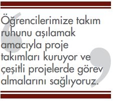 Geçtiğimiz yıl sektörün öncü kurumlarının üst düzey yöneticiler, üniversitemiz ve diğer üniversitelerden saygın öğretim üyeleri ile lisansüstü öğrencilerimizin de katıldığı müfredatımızı geliştirme amaçlı bir çalıştay düzenledik. Bu toplantıda sanayinin ihtiyaçlarını daha da netleştirebildik. Değerlendirmelerimizde, sanayinin ileride oluşabilecek ihtiyaçlarını ve yeni makina sanayilerinin beklentilerini göz önünde bulunduruyoruz. Eğitimde teori ve pratik ayrımından ziyade, öğrencilerin mühendislik bilgilerine ve bu bilgileri kullanım becerilerinin nasıl geliştirilebilece-ğine odaklanıyoruz. İlk yıldan itibaren öğrencilerimize takım ruhunu aşılamak amacıyla proje takımları kuruyor ve çeşitli projelerde görev almalarını sağlıyoruz. Ayrıca farklı bir mühendislik iletişim yöntemi geliştirmek