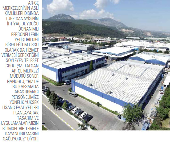 büyüyerek ürün yelpazesini genişleten firmamız, bugün dört ayrı grup şirketi, yurt içi ve yurt dışında toplam dokuz ayrı üretim tesisiyle faaliyetlerini sürdürüyor. 2 bine yakın çalışanıyla ulusal ve uluslararası pazardaki müşterilere hizmet veren Teleset Group; kondanser, metal parça, çevre ısıtıcı, strafor ve kablo gruplarına yönelik çeşitli proses çözümleri sunuyor” diyor. Bilim, Sanayi ve Teknoloji Bakanlığı tarafından 2016 yılının son haftasında yapılan denetimlerin ardından Ar-Ge merkezi olarak tescil edildiklerini söyleyen Hanoğlu, sektörde sahip oldukları yetkinliği Ar-Ge merkezleri sayesinde artıracaklarını vurguluyor.