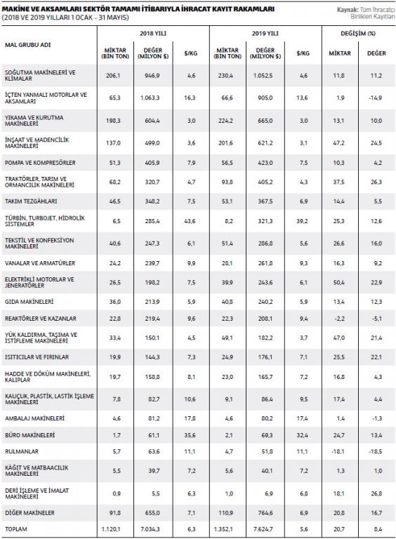 MAKİNE İHRACATI OCAK-MAYIS DÖNEMİNDE YÜZDE 8,4 ARTARAK 7,62 MİLYAR DOLAR OLDU