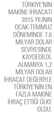 makineleri oldu. 2015 yılının Ocak- Temmuz döneminde söz konusu ürün grubunda gerçekleştirilen ihracatın değeri 1,1 milyar dolar olarak kaydedildi. Listenin ikinci sırasında bul