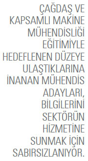 Namık Kemal Üniversitesi Makine Mühendisliği Bölümünde sunulan eğitimin niteliği ve sağlanan teknik imkanlardan memnun olduklarını belirten mühendis adayları, üniversitenin bölgedeki sanayi kuruluşlarıyla sürdürdüğü çalışmaların bilgi ve birikimlerini artırdığını düşünüyor. Sanayinin beklentileri doğrultusunda planlanan dört yıllık zorlu bir eğitimin ardından farklı alanlara yönelmeyi planlayan öğrenciler başarılı olacaklarına inanıyor.