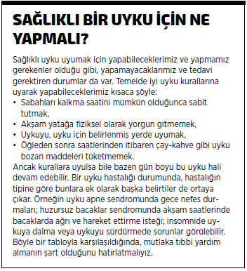 “AKŞAM YATMAK BILMIYORSUN, SABAH KALKMAK BILMIYORSUN” SÖZLERI SIZE DE TANIDIK GELDI MI? ÇOĞUMUZUN GENÇLIK DÖNEMINDE ANNELERIMIZDEN SIK SIK DUYDUĞU BU SÖZ, UYKUYA DAIR MUHTEMELEN AKILDA EN ÇOK KALAN KULLANIMLARDAN BIRI. SAĞLIKLI UYKUNUN ILERI YAŞLARDA HASTALIKLARLA KARŞILAŞMADAN HAYATA DEVAM ETME AÇISINDAN DA KRITIK OLDUĞUNU BELIRTEN UZMANLAR, UYKUNUN SAĞLIKLI, YETERLI VE IYI OLMASININ YAŞLANMAYLA ORTAYA ÇIKAN SAĞLIK SORUNLARININ OLUŞUMUNU ENGELLEDIĞININ NET OLARAK ORTAYA KOYULDUĞUNA DIKKAT ÇEKIYOR.