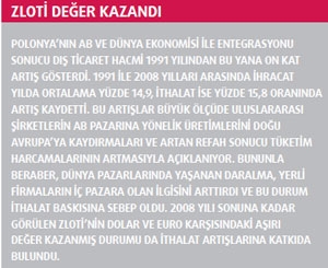Polonya’da alt yapı yatırımlarının hızkazanması, doğrudan yabancı sermayeninPolonya pazarına olan ilgisininkesintisiz devam etmesi ve tüketimharcamalarının mali krizden nispetendaha az etkilenmesi gibi nedenlerdenötürü, Polonya ekonomisi2009 yılında yüzde 1,7 oranındabüyüme gösterdi. 2009 yılında pozitifbüyümenin görüldüğü tek AB üyesiülke Polonya oldu. 2010 yılının ilkçeyreğinde yüzde 3 oranında büyümegösteren Polonya ekonomisi, AvrupaKomisyonu’nun tahminlerine göre,2010 yılında yüzde 2,7 oranındaki büyümeoranı ile AB içerisinde en hızlıbüyüyen ekonomi olacak. KomisyonunPolonya için 2011 yılı büyümetahmini ise yüzde 3,3 oldu.Polonya Hükümeti, küresel krizin etkilerinibertaraf etmek üzere, 30 Kasım2008 tarihinde, 2009–2010 yıllarınıkapsayan, 24 Milyar Euro’luk İstikrarve Kalkınma Planı açıkladı. Plan,banka garantilerinin artırılması, küçükve orta ölçekli işletmelere kredi sağlanmasıve yenilenebilir enerji alanındayatırımlara odaklanıyor. Buna ilaveolarak, IMF’den 22 Milyar Dolarlıkkredi imkanı temin edildi ancak ihtiyaçduyulmadığından kullanılmadı.Diğer taraftan, Polonya Maliye Bakanlığıbütçe açığının Maastricht kriterleriçerçevesinde 2012 yılına kadarGSYİH’nın yüzde 3’üne çekilmesi vebu şekilde Polonya’nın Euro’ya geçişineimkan tanınması için yeni bir bütçeplanını uygulamaya koydu.Geçmiş dönemlerde uluslararası dövizpiyasalarındaki gelişmelere bağlı olarakgerek Dolar gerekse Euro karşısındadeğer kazanan Polonya para birimiZloti, küresel krizin 2008 yılı sonundanitibaren hissedilmesiyle beraberdeğer kaybetmeye başladı. Yabancısermayenin Doğu Avrupa’dançekilmesi ve ekonomik tedbirlerebağlı olarak emisyon hacminin artmasınedenleriyle Zloti, 2009 Şubatayında son beş yılın en düşük değerineulaştı. Bu durum ithalatta önemlidaralmaya ve ithal girdi ile çalışan işletmeler için güçlüklere yol açmış olmakla birlikte, ihracattaki düşüşü bir ölçüde yavaşlattı.