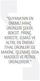 en fazla Trinidad ve Tobago’ya makine ihraç etti. 2015 yılında bu rakam 27,2 milyon dolardı. Guyana’nın Trinidad ve Tobago’ya gerçekleştirdiği ihracat yüzde 180,2 artarken, Guyana’nın 2016 yılında en fazla makine ihraç ettiği ikinci ülke 652 bin dolarla ABD oldu. Söz konusu ülkeye 2015 yılında 2,1 milyon dolar değerinde makine ihraç edilmişti. ABD’ye yönelik ihracat yüzde 69 azalırken, üçüncü sırada bulunan İngiltere’ye 2016 yılında 515 bin dolarlık ihracat yapıldı.