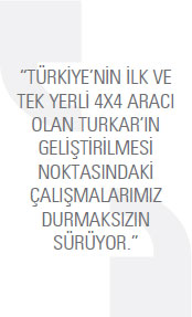 Ar-Ge merkezimizde öncelikli olarak ülkemiz için katma değeri yüksek, Türk çiftçisinin hassas ve sürdürülebilir tarım yapmasına uygun ve ekonomik maliyeti düşük ileri teknoloji tarım makineleri üretimine yönelik projeler gerçekleştiriliyor. Bununla beraber, ileriki dönemlerde Türk sanayisi ve tarımında etkin olarak kullanacak olan robotik ekipmanlar için çalışmalar da yürütülüyor. Türkiye’nin ilk ve tek yerli 4x4 aracı olan TURKAR’ın geliştirilmesi noktasındaki çalışmalarımızın da durmaksızın sürdürdüğünü ifade edebilirim.