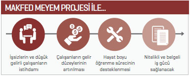 MAKFED MEYEM projesi, makine sektörü için işsizlerin ve düşük gelirli çalışanların istihdam edilebilirlikleri ve gelir düzeylerinin artırılması, bu kişilerin hayat boyu öğrenme sürecinin desteklenmesi ve nitelikli, belgeli işgücü anlayışının geliştirilmesi bakımından önem taşıyor. Projeyle birlikte, çalışanların niteliklerinin tespit edilmesi ve bu çerçevede istihdam piyasalarına uyumlu hale getirilebilmesi ve bu kapsamda bireylerin kalite güvencesi kapsamında belgelendirilmesine de çalışılacak.