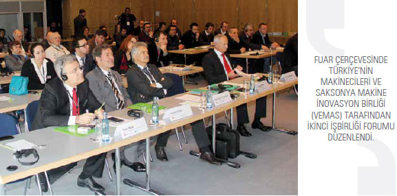 Fuar çerçevesinde Türkiye’nin Makinecileri ve Saksonya Makine İnovasyon Birliği (VEMAS) tarafından ikinci işbirliği forumu düzenlendi. Saksonya Ekonomi, Çalışma ve Ulaşım Bakanlığı (SMWA) tarafından teşvik edilen “Sektör Bazlı Pazar ve Ciro Geliştirme Enstrümanı” (BBA) projesi çerçevesinde düzenlenen forum, Saksonya Kalkınma Ajansı (WFS) tarafından koordine edildi. Türk ve Alman makine sektörleri arasındaki işbirliğinin önemine de- 16 gündem ğinilen forum kapsamında; VEMAS Yönetim Kurulu Başkanı Prof. Dr. -Ing. Dieter H. Weidlich, Saksonya Kalkınma Ajansı Bölüm Müdürü Dr. Thomas Richter, Chemnitz Endüstri ve Ticaret Odası Genel Müdürü Hans- Joachim Wunderlich, Türkiye’nin Makinecileri Almanya Danışmanı Ahmet Yılmaz ve ENOSAD Yönetim Kurulu Üyesi Yaşar Acar birer konuşma gerçekleştirdi. VEMAS Yönetim Kurulu Başkanı Weidlich konuşmasında Türkiye’nin Makinecileri ile yaptıkları işbirliğinin çok değerli olduğunu belirterek Türkiye ile ticari ilişkilerin geliştirilmesinde atılan bu gibi adımların başka sektörlere de örnek olması gerektiğine vurgu yaptı.