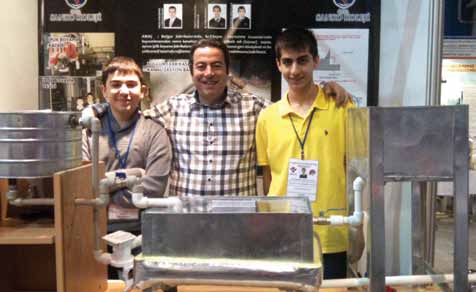 Hasan Gökhan Aslan: Sorumluluk bilinci, çevre duyarlılığı ve ekip ruhuyla her yıl çok sayıda bilimsel proje üreterek TÜBİTAK ve benzeri prestijli yarışmalara düzenli olarak katılıyoruz. Bu çalışmamızı da TÜBİTAK yarışması için hazırladık. Projemizde, sıcak su kullanan fabrikalarda (tekstil, halı, bulgur vb.), kullanım sonrası kanalizasyona dökülen yüksek sıcaklıktaki suyun ısısının termal transferle geri kazanılması ve bu yolla hem enerji tasarrufu sağlanması hem de doğaya verilen zararın en aza indirilmesini amaçladık. Araştırma ve taramalarımızda, atıl ısı enerjisinin sanayinin bazı alanlarında nadir de olsa eşanjör sistemiyle geri dönüştürülerek kullanıldığını gördük. Bu genellikle kömür kazanlı sistemlerde, yanmış kömürün kor halindeyken yanma bölümlerinden alınıp başka bir sisteme aktarılarak, bu sistemde dolaşan soğuk suya ısı transfer etmesi ya da yanma bölümünde (yanma işlemi tamamen tamamlandıktan sonra) su dolaştırılmak suretiyle suya ısı transferi sağlanması şeklinde gerçekleşiyor. Bu yolla elde edilen sıcak su genellikle temizlik (iş sonunda işçilerin duş alması v.s.) nadiren de fabrikanın ofis gibi küçük bazı bölümlerinin ısıtılması için kullanılıyor. Bu kullanım her ne kadar ısı geri dönüşümü sağlasa da atıl ısının küçük bir bölümünü dönüştürmeye tekabül ettiği ve maliyeti yüksek, getirisi az olduğu için fazla tercih edilmiyor. Ayrıca bu yöntemde, atıl sıcak suyun değil, kömür kazanlı sistemlerde yanma bölümündeki atıl ısının geri dönüşümü sağlanıyor. Projemizde ise kazanın bir kez kaynamasından sonra meydana gelen atıl sıcak suyun ısısını, pek çok kez kaynatılması gereken suyun ısıtılmasına yardımcı olmak için kullandık. Böylelikle ciddi bir enerji tasarrufu sağlamanın yanında daha düşük yakıt tüketimiyle doğaya verilen zararı azaltmayı hedefledik.