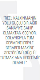 Türk makine sektörü, çok köklü bir geçmişe sahip olmakla beraber özellikle son yıllarda hızla büyüyen bir sektör haline geldi. Fakat maalesef hala gerektiği ve hak ettiği değeri görmüyor. Reel kalkınmanın yolu güçlü bir ağır sanayiye sahip olmaktan geçiyor. Dolayısıyla tüm segmentleriyle beraber makine sektörünü güçlü tutmak ana hedefimiz olmalı.