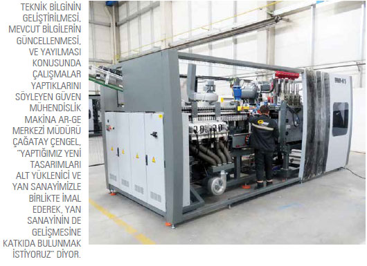 Türkiye için en önemli sektörlerden olan makine, elektronik, otomasyon ve yazılım sektörlerinde son teknolojilere uygun ürünler imal etmek amacıyla çalışmalarına devam ettiklerini söyleyen Güven Mühendislik Makina Ar-Ge Müdürü Çağatay Çengel, “Yapacağımız Ar-Ge çalışmaları ve geliştireceğimiz bilgi birikimi ile bir dünya markası olarak sektörümüzdeki lider firmalar arasında yer almak istiyoruz” diyor.