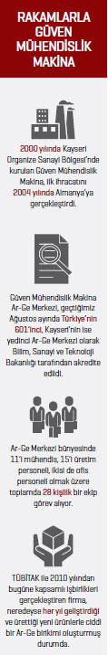 Kablo imalat, mobilya ve tekstil makineleri üretimi ile elektronik otomasyon ve yazılım sistemleri yapmak amacıyla 2000 yılında kurulan Güven Mühendislik Makina, geçtiğimiz Ağustos ayında Türkiye’nin 601’inci ve Kayseri’nin yedinci Ar- Ge Merkezi olarak Bilim, Sanayi ve Teknoloji Bakanlığı tarafından akredite edildi.