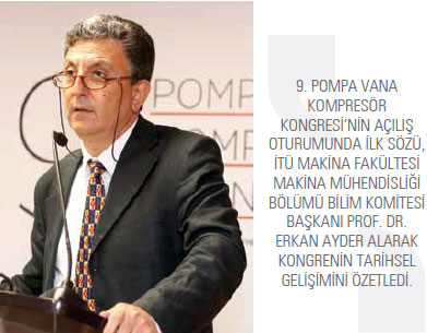 Pompa, vana, kompresör ve bunlara ilişkin tesisler konusunda araştırma, tasarım, imalat, işletme ve pazarlama faaliyetlerinde bulunan kişileri ve ayrıca sektöre katkı sağlayan diğer kurum-kuruluş temsilcilerini bir araya getirip, sektörün faaliyet alanına giren konuların tartışıldığı bir platform yaratmak amacıyla düzenlenen “9’uncu Pompa Vana Kompresör Kongresi” bu yıl “Eko-Tasarım ve Eko- Sistemler” temasıyla gerçekleştirildi. Türk Pompa ve Vana Sanayicileri Derneği (POMSAD), Makine İmalatçıları Birliği (MİB), İstanbul Teknik Üniversitesi (İTÜ) Makine Fakültesi ve Orta Doğu Teknik Üniversitesi (ODTÜ) Makine Mühendisliği Bölümü kongreyi düzenleyen kuruluşların arasında yer alırken; Akışkan Gücü Derneği (AKDER), Avrupa Vana Sanayicileri Derneği (CEIR), Avrupa Pompa İmalatçıları Derneği (EUROPUMP), İklimlendirme Soğutma Klima İmalatçıları Derneği (İSKİD), Makine İhracatçıları Birliği (MAİB), Makine İmalat Sanayii Dernekleri Federasyonu (MAKFED), Makine Sanayii Sektör Platformu (MSSP), Avrupa Kompresör, Vakum Pompası ve Pnömatik Aletler İmalatçıları Birliği (PNEUROP), Türk Tarım Alet ve Makinaları İmalatçıları Birliği (TARMAKBİR) ve Yıldız Teknik Üniversitesi de destekleyici kuruluşlar oldu. Alarko, Asteknik Vana, Dalgakıran Kompresör, LayneBowler, Mas-Daf, Sarmak Kompresör, Sep Pompa, Standart Pompa, Vansan, Vastaş ve Türkiye’nin Makinecileri ise kongrenin sponsorluğunu üstlendi. Ana konuları; “Pompa, Vana, Kompresör ve Fan Tasarımı ve Seçimi, Sistem Verimi ve Enerji Tasarrufu, Boru Sistemleri ve Şebekeler, Pompa ve Vanalarda Kavitasyon, Kompresörlerde ve Fanlarda Kararsızlık, Ölçme ve Kontrol, Nano Teknoloji, Malzeme ile ilgili Sorunlar, Tasarım ve Geliştirme HAD, Pompa, Vana, Kompresör ve Fan Karakteristikleri, Vanalar, Borular ve Ek Teçhizat, Mini ve Mikro Santraller, Sızdırmazlık Problemleri, İşletme ve Bakım, İç ve Dış Pazarlama, AB Kuralları ve Standartlar” olarak belirlenen 9’uncu Pompa Vana Kompresör Kongresi’nin açılış oturumunda ilk sözü, Kongrenin Bilim Komitesi Başkanı İTÜ Makina Fakültesi Makina Mühendisliği Bölümü Prof. Dr. Erkan Ayder alarak kongrenin tarihsel gelişimini özetledi.