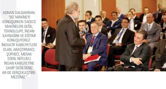 Kongrenin konuşmacıları arasında yer alan MAİB ve MAKFED Yönetim Kurulu Başkanı Adnan Dalgakıran, Türkiye’nin dünyadaki bütün istatiksel ortalamalara uygun bir yerde bulunduğunu ve bu gidişatın uzun yıllardır böyle devam ettiğini dile getirdi. Söz konusu bu duruma vasatlık adı verildiğini ifade eden Dalgakıran konuşmasını şöyle sürdürdü: “Ülke olarak sürekli moral-motivasyon adı altında kendimizi yine kendimizle mukayese ediyoruz. Meseleler karşısında böyle bir kültürümüz var ve hep olumlu konuşmayı bir motivasyon olarak algılıyoruz. Eleştirel, analitik ve mukayeseli bakmaktan çok ürküyoruz. Halbuki insanın kendi konumunu doğru bir şekilde belirlemesi ürkütücü bir şey değildir. Kaldı ki bu bakış açısı insanın hedeflerini doğru belirlemesi için en önemli unsurlardan da biridir. Makine sektörümüz bugün 15 milyar dolar civarında ihracat yapıyor. Almanya’da bu rakam 300 milyar dolar civarında. Çin’in yazdığı bir hikaye var. 1992 yılında Çin’in makine ihracatı 3 milyar dolar civarında. 2004 yılında bu rakam 200 milyar dolardan fazla bir seviyeye ulaşıyor. Türkiye’de kişi başına düşen milli gelir 10 bin dolar seviyesine geldi ve burada büyük bir duvarla karşı karşıya. Orta gelir tuzağı dediğimiz bu durumu son 60 yılda aşabilen iki ülke, Tayvan ve Güney Kore’dir. Odaklandıkları sektörler ise makine, elektronik ve yazılımdır. Bizim şu anda makine ihracat değerimiz kilogram başına altı dolar. Bunu 15 dolara çıkarmak istiyorsak yazılımı ve elektroniği geliştirmemiz gerekiyor. Bu çerçeveden bakınca dünya ülkeleri tarafından üretim araçlarını imal etmenin stratejik olarak değerlendirildiğini görüyoruz. Daha doğrusu ‘Teknolojiyi satın alarak üretim yapan ülke konumundan çıkıp, teknolojiyi üreten ülke konumuna nasıl gelinir?’ sorusu, bütün hikayeyi özetliyor. Ve hikayeye böyle baktığınız zaman göreceksiniz ki makine sadece makine değildir. Biz makineyi konuşurken sadece makineleri değil; teknolojiyi, insan kaynağını ve eğitimi konuşuyoruz. İnovatif kabiliyetleri olan, araştırmacı, şüpheci, merak eden, nitelikli insan kabiliyetine sahip değilseniz Ar-Ge gerçekleştiremezsiniz. Dünyadaki rakiplerinizle aranızdaki farkı ölçüp kıyaslamadan nerede olduğunuzu doğruca belirleyemezsiniz. Türkiye bugün geldiği yere sadece ucuz işgücü avantajını kullanarak geldi. Sanayimizin yüzde 70’i orta düşük ve düşük teknolojide üretim yapıyor. Bu durumu değiştirmemiz, yeni bir hikaye yazmamız lazım.”