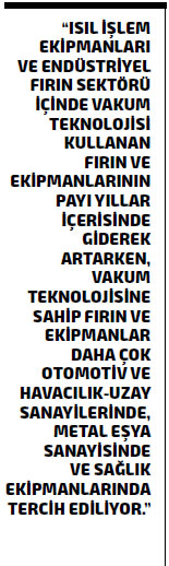 Isıl işlem ekipmanları ve endüstriyel fırın sektörü içinde vakum teknolojisi kullanan fırın ve ekipmanlarının payı yıllar içerisinde giderek artarken, vakum teknolojisine sahip fırın ve ekipmanlar daha çok otomotiv ve havacılık-uzay sanayilerinde, metal eşya sanayisinde ve sağlık ekipmanlarında tercih ediliyor. Vakum teknolojili fırın ve ekipmanların küresel pazar büyüklüğünün yıllık ortala yüzde 6 büyüme potansiyeline sahip bulunduğu düşünülürken, bu büyümede özellikle otomotiv ve makine imalat sektörlerinin yenileme talebinin etkili olduğu bildiriliyor. Geleneksel atmosferik fırınlar ise ağırlıklı olarak gemi sanayisi, ağır vasıtalar, raylı sistemler ve iş-inşaat makineleri sanayilerinde kullanılmaya devam ediliyor. Artan işgücü maliyetleri, fırın işletmelerinin dijitalleşmesi ve işgücü yetersizliği nedeniyle özellikle Japonya ve Güney Kore gibi ülkeler tam otomasyonlu ekipmanlar ve fırınlar üretimine ağırlık vermeye başlarken, yüksek otomasyon, özellikle çift ve çok odalı fırınların büyük ölçekli imalat sanayilerinde kullanımını da olanaklı hale getiriyor. İmalat sanayilerinde üretim teknolojileri ve süreçlerinin de dijitalleştiği ve sürekli hale geldiği düşünüldüğünde, tüm süreçlerin birbirine otomatik olarak bağlandığı ve hiçbir aşamada durmadığı ısıl işlem süreçleri de giderek yaygınlaşmaya başlıyor. Böylece tüm üretim süreci kontrol edilebiliyor, her aşamada standart ve kalite sağlanıyor, operasyon maliyetleri düşürülüyor ve aşırı kapasite yaratılmasından kaçınılmış olunuyor.