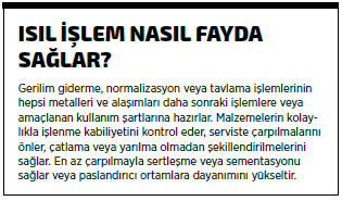 Çeliği ham madde olarak alıp, çeşitli imalat yöntemleriyle şekil verdikten sonra nihai parça/komponent haline getiren tüm imalatçılar; kullanım yeri ve amacına bağlı olarak, malzemenin istenen ömürde olabilmesi ve beklenen fonksiyonu yerine getirebilmesi için üretim süreçlerinin belirli bir aşamasında “ısıl işlem” uygulamak zorunda. Bu kapsamda otomotiv, makine imalat sektörleri, havacılık ve savunma sanayileri, kalıp imalat ve genel imalat sektörlerinde ısıl işlem, olmazsa olmaz bir üretim sürecini oluşturuyor.