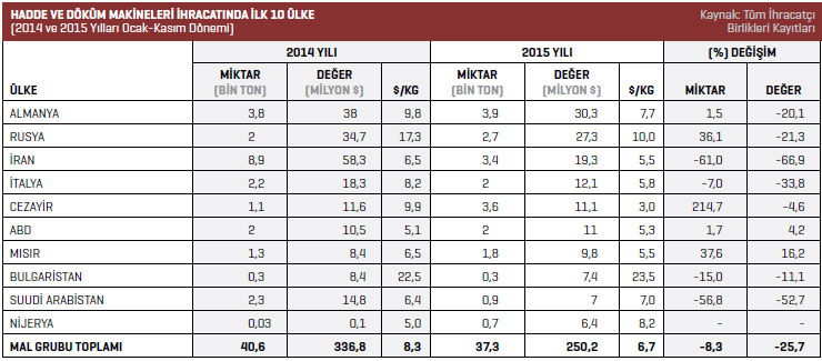 2015 yılının Ocak-Kasım döneminde Türkiye geneli hadde ve döküm makineleri sektöründe ihracat artışının en fazla yaşandığı ülke yüzde 16,2 ile Mısır oldu.