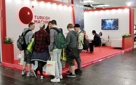 Türkiye’nin Makinecileri, fuar alanının çeşitli noktalarına ve shuttle’lara verdiği “Turkish Machinery” imzalı reklamlarla Türk makine sektörünün üretim gücünün altını çizdi. Türkiye’nin Makinecileri ayrıca fuara katılan Türk firmalarının stant numaralarını ve ürün bilgilerini de içeren broşür hazırlayarak ziyaretçilere dağıttı. Fuara MAİB ve Türkiye’nin Makinecileri’ni temsilen Makine Şubesi Uzmanları Işıl Aydın ve Tuğçe Karabörk Okan katıldı. Makine alt sektör derneklerini kendi ihtisas fuarlarında desteklemeye devam eden Türkiye’nin Makinecileri’nin standında, MSSP üyesi derneklerden Ağaç İşleme Makine ve Yan Sanayisi İş Adamları Derneği’nin (AİMSAD) temsilcisi de hazır bulunarak fuar ziyaretçilerine, sektörleri ve üye firmaları hakkında bilgi verdi. Fuarın ikinci günü AİMSAD tarafından Türkiye’nin Makinecileri’nin standında düzenlenen kokteyle Türk firmalarının temsilcilerinin yanı sıra, Hannover Başkonsolosu Banu Malaman, Hannover Ticaret Ataşesi Ruhi Deniz ile Almanya’da temasta bulunulan kurumların temsilcileri katıldı. Türkiye’nin Makinecileri’nin standında fuar süresince ziyaretçilere üye firmaların iletişim bilgilerinin yer aldığı katalog ve CD dağıtılarak Türk makine sektörü ile Türkiye’nin Makinecileri’nin çalışmaları hakkında detaylı bilgi verildi.