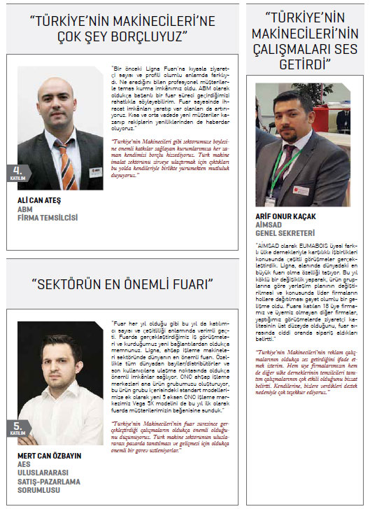 Türkiye’nin Makinecileri, Almanya’nın Hannover kentinde iki yılda bir düzenlenen ormancılık ve ağaç işleme makineleri fuarı Ligna’ya katılarak ziyaretçileri Türk makine sektörü hakkında bilgilendirdi. 1.500 firmanın ürünlerini sergilediği fuarı dört gün boyunca 93 bin kişi ziyaret etti. Ağaç işleme makineleri sektöründeki yenilikçi fabrika, makine, araç ve çözümlerin sergilendiği fuara bu yıl Türkiye’den 35 firma katıldı.