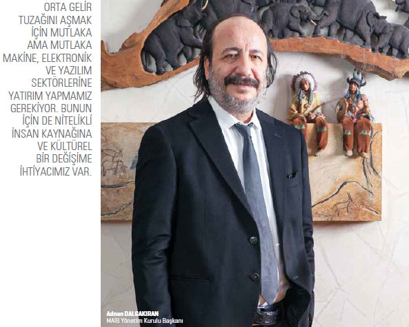 Asıl doğru olan katma değerli üretim yapmak ve ithalatı bu yolla baskılamak ama bunu gerçekleştiremiyoruz. Türkiye’nin problemi, yeterince sanayileşmeden hizmet sektörünün fazla gelişmesidir. 10 bin dolar seviyesindeki KBGSYİH orta düşük ve düşük teknoloji üretimi için yüksekken, orta yüksek teknolojiler için düşük kalıyor. Orta gelir tuzağını aşmak için mutlaka ama mutlaka makine, elektronik ve yazılım sektörlerine yatırım yapmamız gerekiyor. Bunun için de nitelikli insan kaynağına ve kültürel bir değişime ihtiyacımız var. Türkiye’nin Makinecileri olarak 2017’de 15 milyar dolar değerinde ihracat gerçekleştirdik. Ancak hala kilo değerimizde ciddi artışlar sağlayamıyoruz. Diğer yandan, AB ithalatının büyümesinden de kısıtlı pay alabildik! Bu, üzerinde dikkatle durmamız gereken bir gerçek. Avrupa, örneğin 10 birim büyüyorsa Türkiye’nin AB’ye satışları ancak beş birim büyüyebiliyor. Hâlbuki bizim pazar payımızı büyüterek 15 birim büyümemiz gerekiyor. Dolayısıyla 15 milyar dolarlık ihracattan ve genel ekonomik büyümeden çok da mutlu olduğumu söyleyemem. Çünkü büyümenin kalitesinde sorunlarımız var. En büyük pazarımız olan AB’nin büyümesinden Çin ve Güney Kore bizden daha fazla pay alırken, çok mutlu olamıyorum. Büyümesine büyüyoruz ama pazardan aldığımız pay daralıyor. Olmamız gereken yerden uzaklaşıyoruz da diyebiliriz.