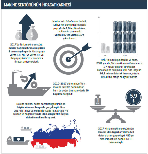 Dünyadaki genel gidişat güçlü büyümenin süreceği yönünde. Dolayısıyla Türkiye’nin ve makine imalat sektörlerinin de 2018’de büyümeye devam edeceğini, 17 ila 18 milyar dolar seviyesine yaklaşabileceğimizi öngörebiliyoruz. Eğer bu gerçekleşemezse, dünya büyürken daralıyoruz anlamı çıkar ki bu da çok daha ciddi sıkıntılara işaret eder.