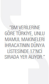 UNLU MAMUL MAKİNELERİ İHRACATINDA 17’NCI SIRADAYIZ